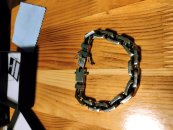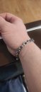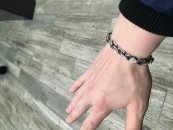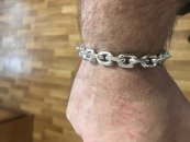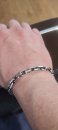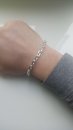 Full-fledged silver bracelet on hand.