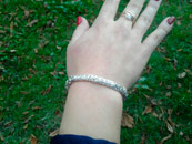 Full-fledged silver bracelet on hand. This weaving is quite time consuming to execute, and most jewelers do not have a sufficient level of manufacturing skills to achieve high quality jewelry, let alone just make it. At the moment, the quality of our work from this weaving is significantly superior to most other manufacturers.
