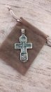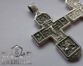 Изображено на кресте: Распятие Христово с предстоящими. Святая Троица. Архангел Михаил. Святые Воины. Тихвинская икона Божией Матери. Православный серебряный крест с чернением.Высота: 8 мм
