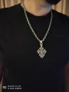 Зображено: Розп'яття Христове з майбутніми. Ангел охоронець. Казанська ікона Божої Матері. Святі покровителі сім'ї. Довжина: 4.2 см